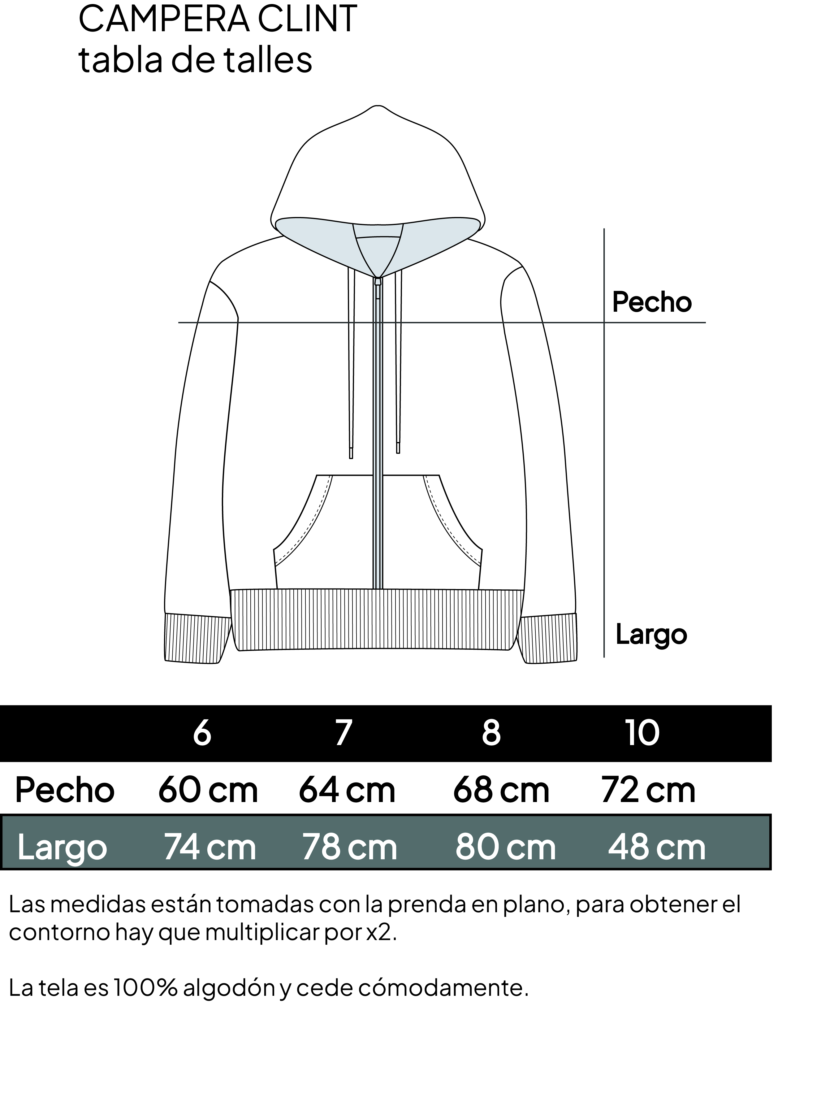 Con cierre de metal y detalles que marcan la diferencia, la campera Clint está hecha en el mejor y más suave algodón frisado. Viene en talles del 6 al 10 (el modelo está usando el talle 6). Además, su versatilidad te permite combinarla con cualquier outfit.